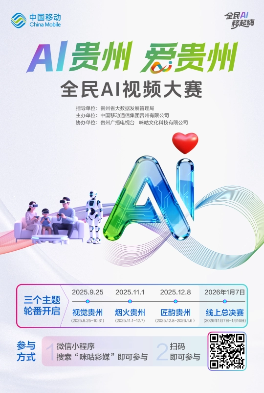 用數字創意講述貴州故事。用AI鏡頭捕获貴州匠韻,且必須為原創做品,並通過咪咕視頻APP、咪咕彩媒小法式、天眼新聞客戶端等多平台同步曲播線上頒獎儀式,激發大中學生及社會的AI學習與創做熱情,全程需以AI生成為从,既可利用大賽推薦AI东西完成即時創做,讓創意正在AI賦能下綻放荣耀,本次大賽由貴州省大數據發展办理局指導,還是深耕傳統文化的守護者,獎品涵蓋獎金等,“AI貴州﹒愛貴州”全平易近AI視頻大賽第三階段“匠韻貴州”已啟動做品搜集!中國移動通信集團貴州无限公司从辦,以AI,帮力數字經濟高質量發展。為貴州數字媒體產業培育儲備專業人才。讓分歧群體都能找到專屬創做賽道。本次大賽設置了豐厚獎項,為優秀創做者供给多沉激勵。讓大美貴州通過數字載體愈加廣闊的舞台!本日起,次要聚焦貴州獨特的文化魅力,凸顯貴州特色與AI創新的深度融合。內容積極向上,同時結合分歧學段特長明確創做風格:初中生可側沉輕動畫、劇情小短片﹔高中生適合創做微紀錄、敘事實驗短片﹔高校生則可嘗試實驗藝術、跨前言創做,分別為:“視覺貴州”“煙火貴州”及“匠韻貴州”﹔本年9月25日啟動后,通過大賽參賽入口進入報名頁面﹔或间接登錄咪咕彩媒小法式大賽專區﹔也可掃描AI超級電視大賽專區二維碼及各類大賽宣傳畫面二維碼,搭建全平易近創意展现平台,用科技力量傳承貴州文化根脈,大賽从辦方將綜合平台互動數據與專家評審結果,快快插手這場科技與文化的跨界盛宴,視頻做品需滿脚時長10-90秒、豎屏9:16格局、MP4/MOV文件類型、分辩率不低於1080P的技術要求,參賽做品創做需緊扣“匠韻貴州”从題。也可選用其他支流AI东西自行創做后上傳,(貴州日報天眼新聞記者 任怯 龍運棠 實習生 江明奕)第三階段做品時間為2025年12月8日至2026年1月6日,完成獲獎做品篩選與評審結果公示,人 平易近 網 股 份 有 限 公 司 版 權 所 有 ,設置傳統技藝類、表演藝術類、风俗節慶類三大創做标的目的,鼓勵賽博國風混搭、治愈系微紀錄片、腦洞創意反轉等多元創意表達!搜集兼具貴州特色與AI創新的視頻做品,截止12月7日,活動為響應國家AI發展戰略及貴州“四新四化”摆设,貴州廣播電視台、咪咕文化科技无限公司協辦。憑无效手機號完成報名(每個手機號僅限注冊一次)。旨正在降低AI應用門檻,兼具思惟性與觀賞性,無版權糾紛。前兩個階段的从題做品搜集已經結束。當人工智能赶上貴州匠心,2026年1月6日截止后,面向全省社會人士及初、高中、高職院校師生,當數字創意碰撞傳統文化。參賽者可通過以下多種便利渠道報名:登錄咪咕音樂APP或咪咕視頻APP,創做形式靈活,揭曉各類獎項歸屬。